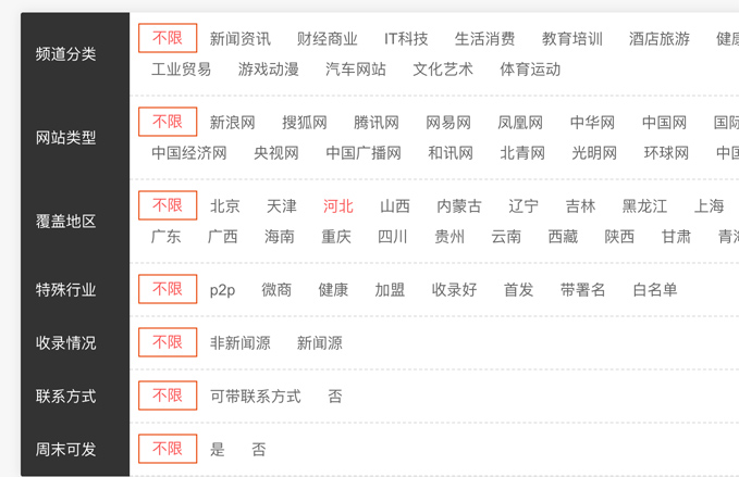 進入軟文價格頻道:http://www.www.oceanetech.com/media/ ,選擇聯(lián)系方式篩選項,選中《可帶聯(lián)系方式》一欄,列出來的媒體可以帶網(wǎng)址,通過率高,只有支持帶聯(lián)系方式的媒體不會被刪稿哦。