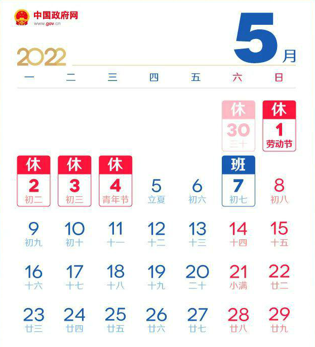 五一國際勞動節(jié)將至,根據(jù)《國務(wù)院辦公廳公布2022年放假安排》,結(jié)合公司的實際情況,現(xiàn)就2022年五一放假安排通知如下: